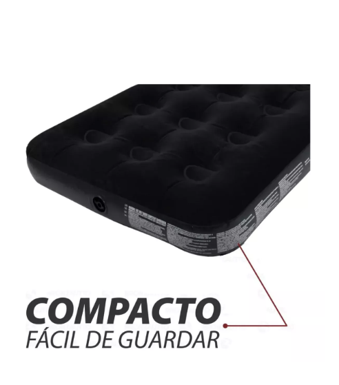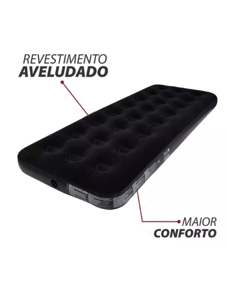 Colchão inflável resistente, prático e confortável, possui um agradável toque aveludado fácil de usar e compacto para guardar, ideal para curtir seus momentos de lazer.