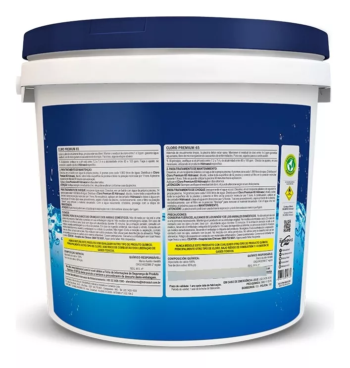 Hipoclorito De Cálcio Hidroazul Cloro Premium 65 Balde 10kg